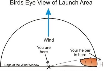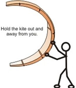 Le cerf-volant doit être en forme de lettre «C» et avec l'une des pointes sur le sol, le bord d'attaque pointe vers le vent et l'intérieur du cerf-volant vers vous.