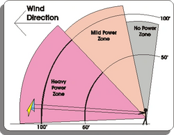 Vous utiliserez la zone verte lorsque le vent souffle très fort.