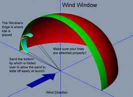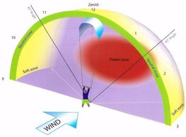 La fenêtre de vent du kite est la surface où le kite peut voler. Dans cette fenêtre de vent, il y a 3 composantes :